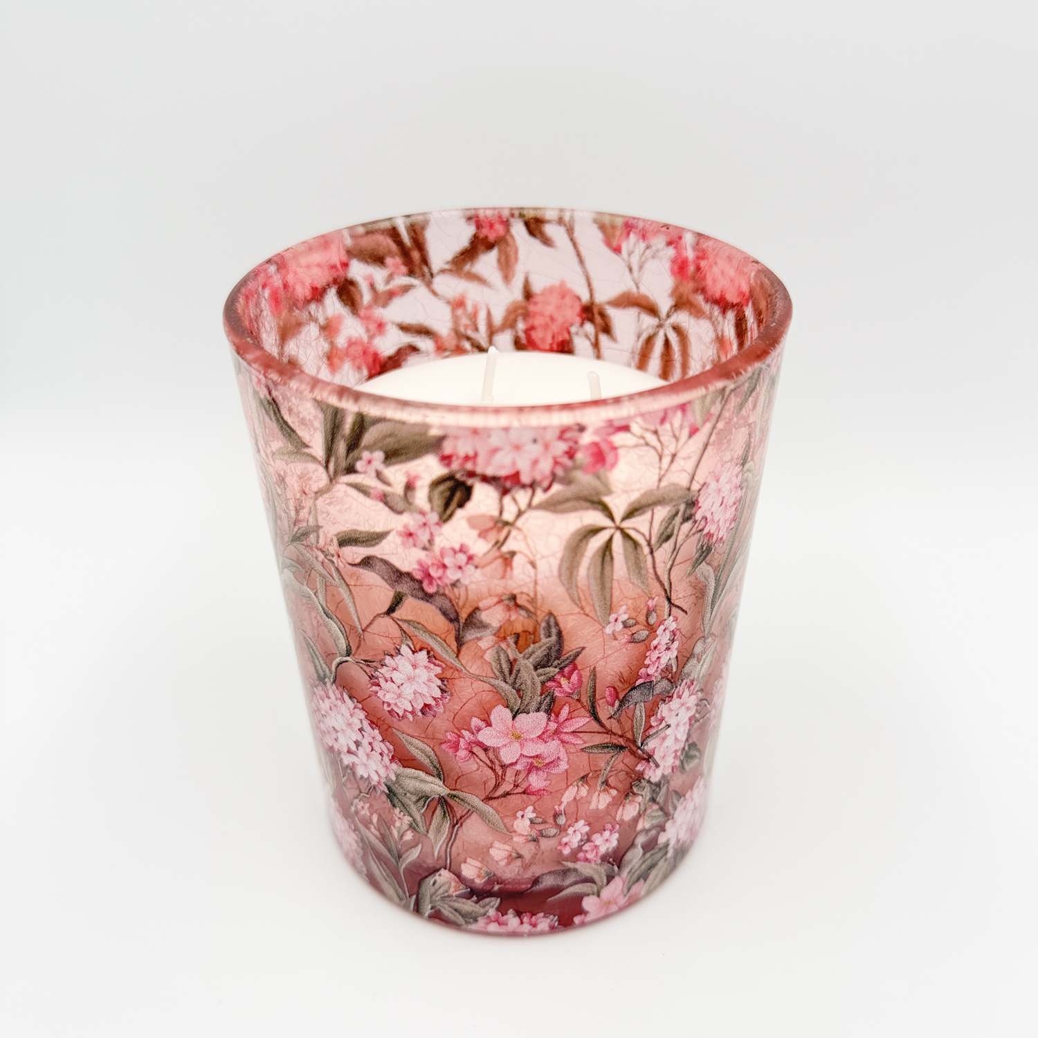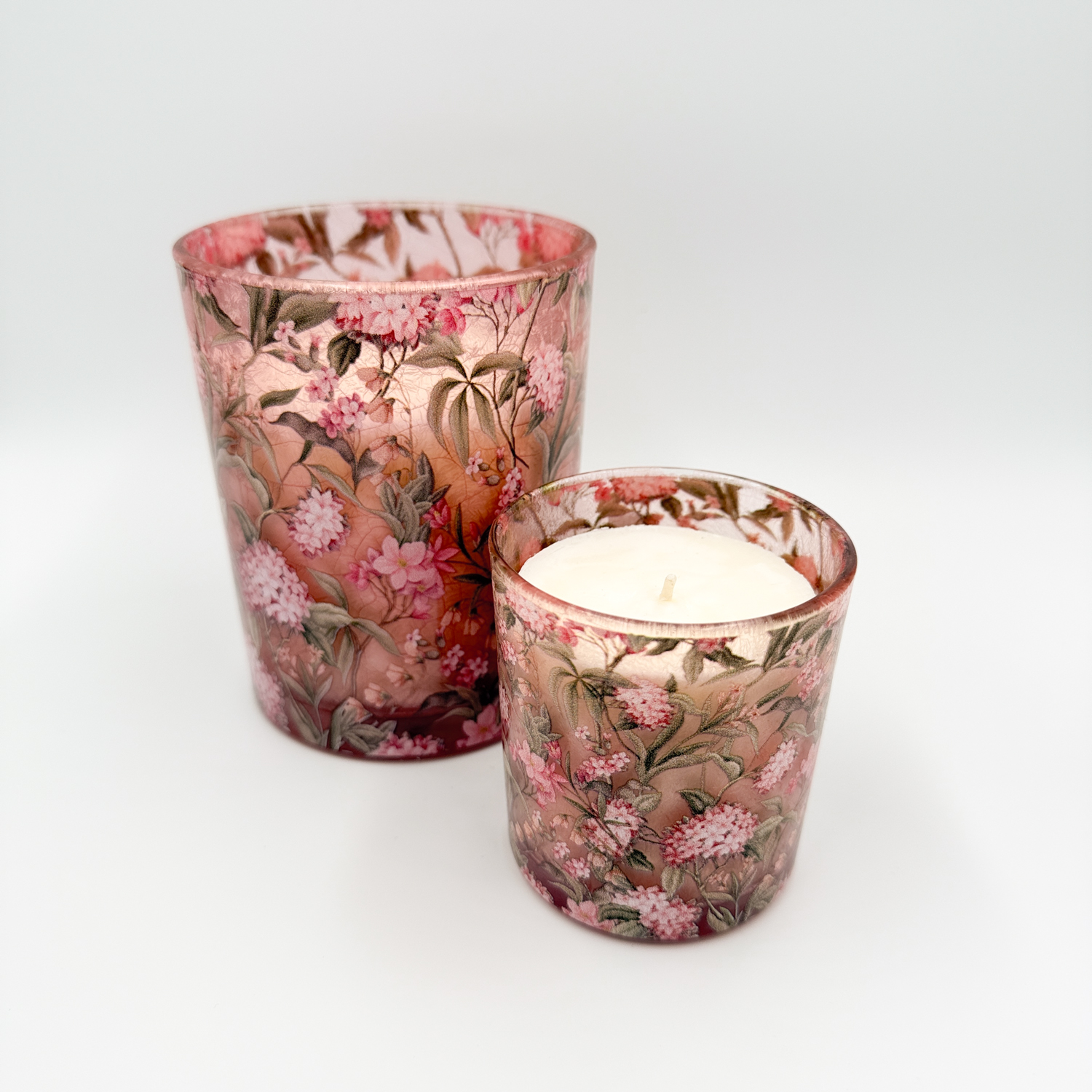 Roses – Joie de Printemps révèle tout le charme d’une bougie haut de gamme, avec son verre transparent subtilement teinté d’un rose soutenu qui capte la lumière avec élégance. Entièrement habillé de roses délicates, ce modèle évoque la générosité des jardins en pleine floraison et la douceur des premiers jours ensoleillés. Allumée, la flamme se mêle aux pétales et crée une atmosphère chaleureuse, romantique et résolument raffinée.
